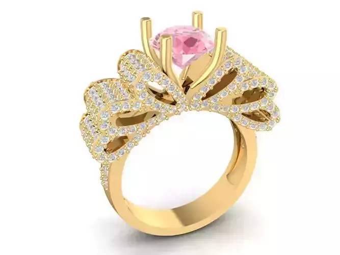 This 3D model features an elegant women’s ring designed with a crown inspired structure and a round pink gemstone as the centerpiece. The surrounding details are set with multiple small diamonds, creating a radiant and luxurious look. This unique design symbolizes beauty, elegance, and sophistication, making it perfect for fine jewelry collections, anniversaries, or fashion statements.