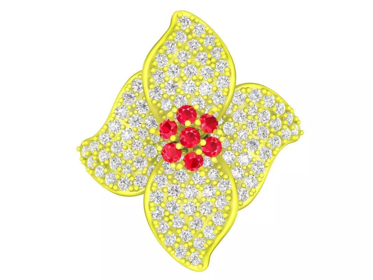 This elegant flower cluster diamond ring 3D model features a refined floral design inspired by nature and classic fine jewelry aesthetics. The ring showcases a layered flower shape with pavé-set stones, highlighted by a contrasting gemstone cluster at the center, creating depth, brilliance, and a luxurious visual impact.