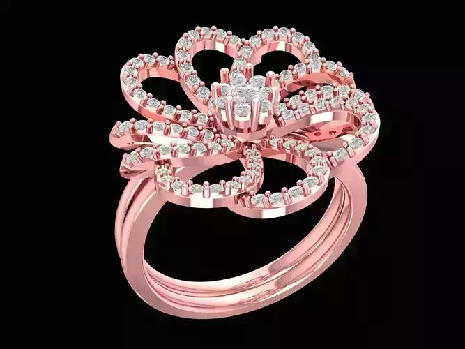 This luxury flower bloom diamond ring for women 3D model showcases a stunning open-petal design symbolizing beauty and prosperity.