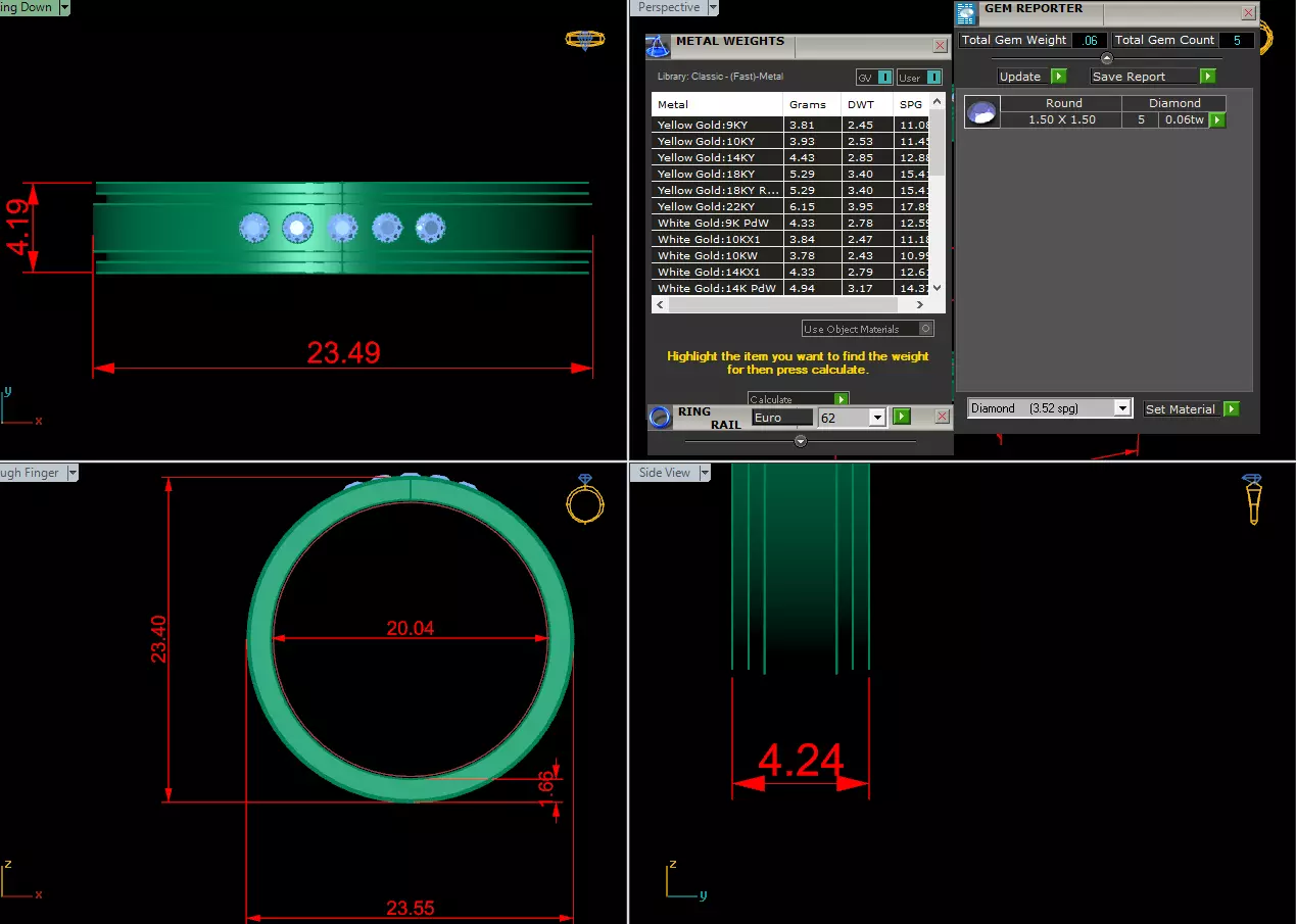 Gems: - Total gem count is 5 and total gem weight is 06. There are gems round 1.50. More info in the picture above.