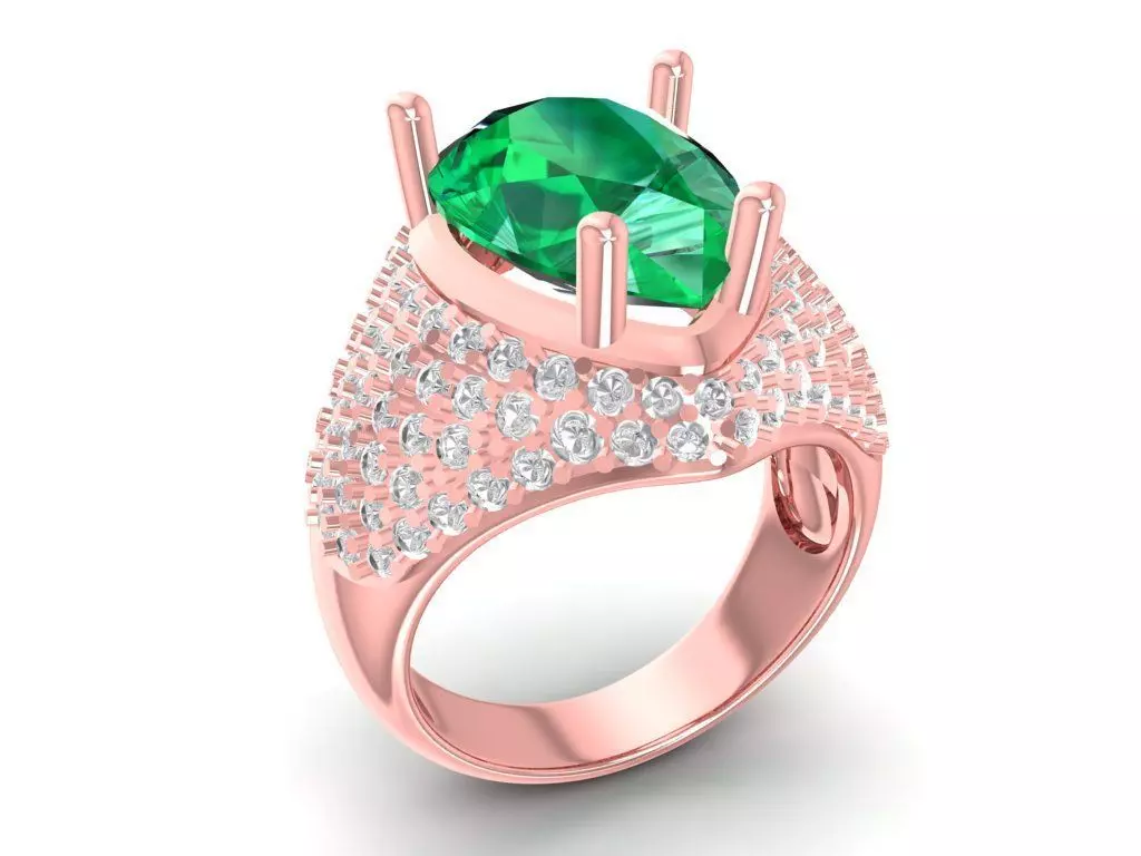 This 3D model presents a luxury pear cut diamond ring with a pave setting, designed especially for women. The center stone is a stunning pear cut gemstone, surrounded by multiple small accent stones on the shank, creating an elegant and sparkling look. The design highlights both modern luxury and timeless beauty.