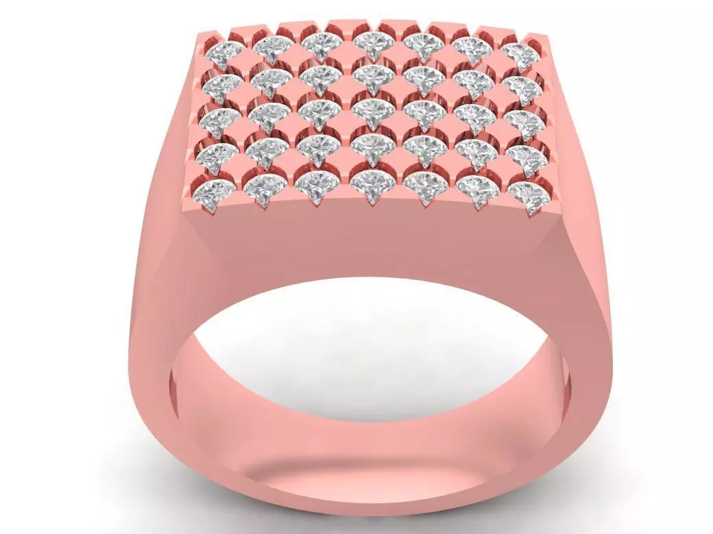 This luxury square pave diamond men ring showcases a sophisticated and bold design that symbolizes confidence and success. The ring features a flat-top surface encrusted with multiple rows of round-cut diamonds, creating an intense sparkle that catches every eye. Its geometric structure and smooth finishing provide a perfect harmony between strength and refinement. Ideal for confident men who appreciate premium craftsmanship and elegant modern jewelry. The 3D model includes precise dimensions and detailed gemstone settings, suitable for professional jewelry manufacturing or photorealistic rendering.