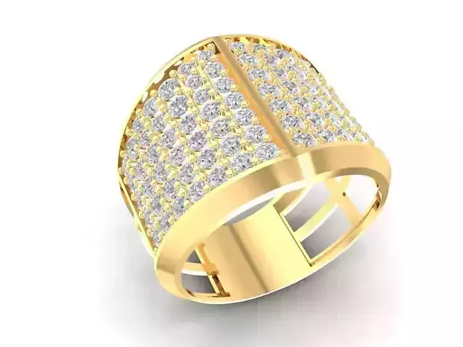 This 3D model features a luxury wide band ring designed with a grid-style structure and multiple rows of pave-set diamonds. The bold and heavy design makes it an ideal statement piece for men, reflecting a modern and urban aesthetic. Each side of the ring is carefully structured for durability and symmetry, while the top surface showcases a sparkling full pave diamond layout.