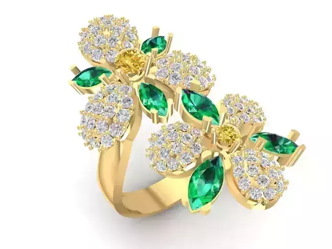 Luxury Floral Diamond and Emerald Cluster Ring for Women 1490 3D print model