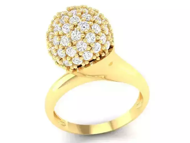 This elegant 3D model features a luxury dome-shaped diamond ring designed with full pavé setting on the top sphere surface, creating a sparkling and eye-catching brilliance from every angle. The round dome head is fully covered with precisely aligned stones that enhance light reflection and add depth to the design.