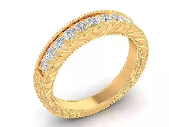 This 3D model is a diamond eternity gold ring designed with elegant round cut stones set all around the band. The ring combines timeless beauty with delicate craftsmanship, making it perfect for daily wear or special occasions.
