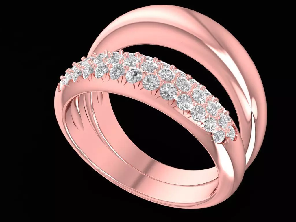 This Twisted Diamond Band Ring 3D model features a graceful crossover design with two intertwined bands, one of which is fully pavé-set with round brilliant-cut diamonds.