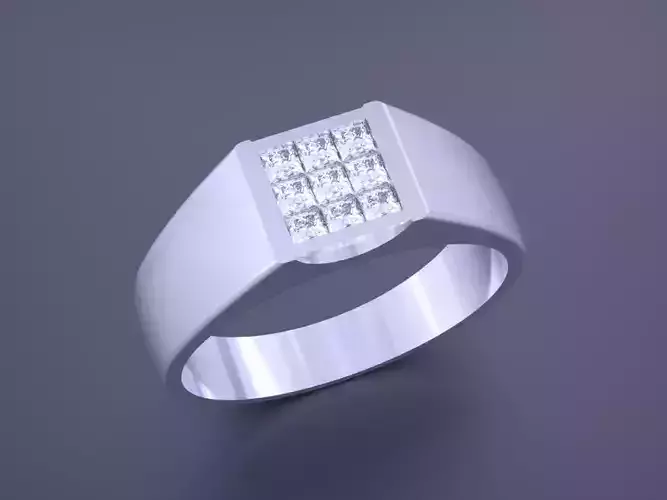 Diamond Signet Men Ring - Invisible Stone Setting 3D print model