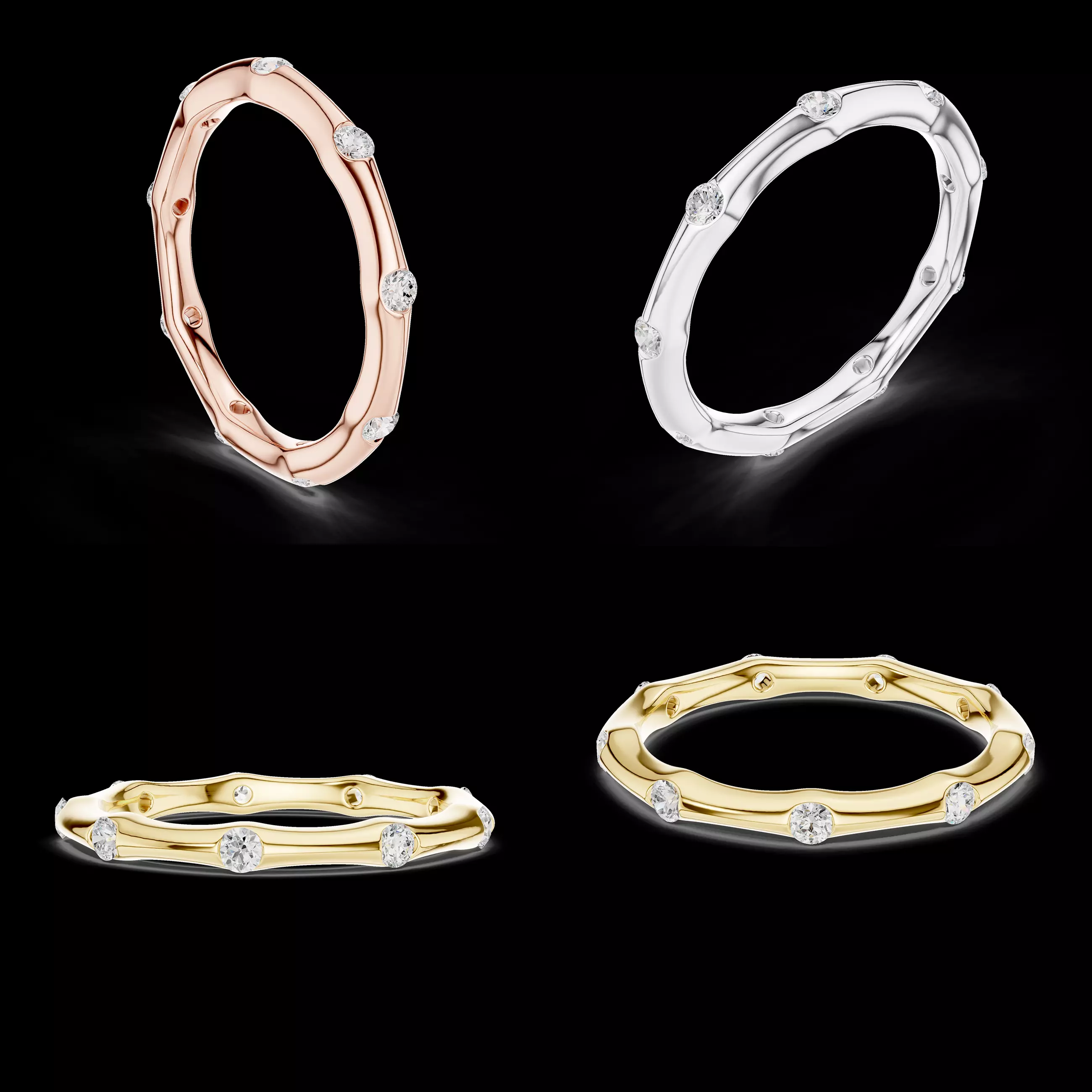 The ring design works perfectly for use as an eternity band, fashion ring, wedding band, or stacking ring. Its elegant structure makes it ideal for high-end commercial collections as well as bespoke jewelry projects.