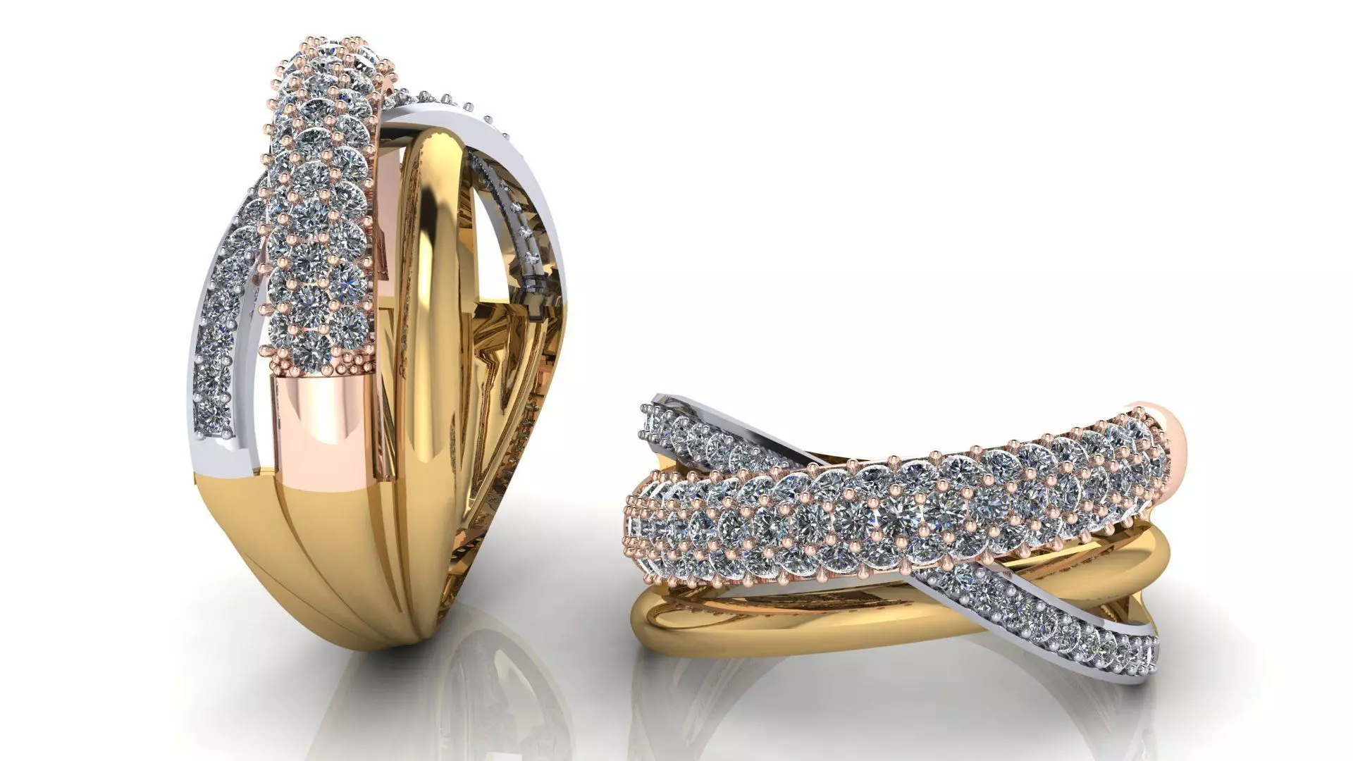 Diamond Three Tone Crossover Jewelry Ring 3D print model