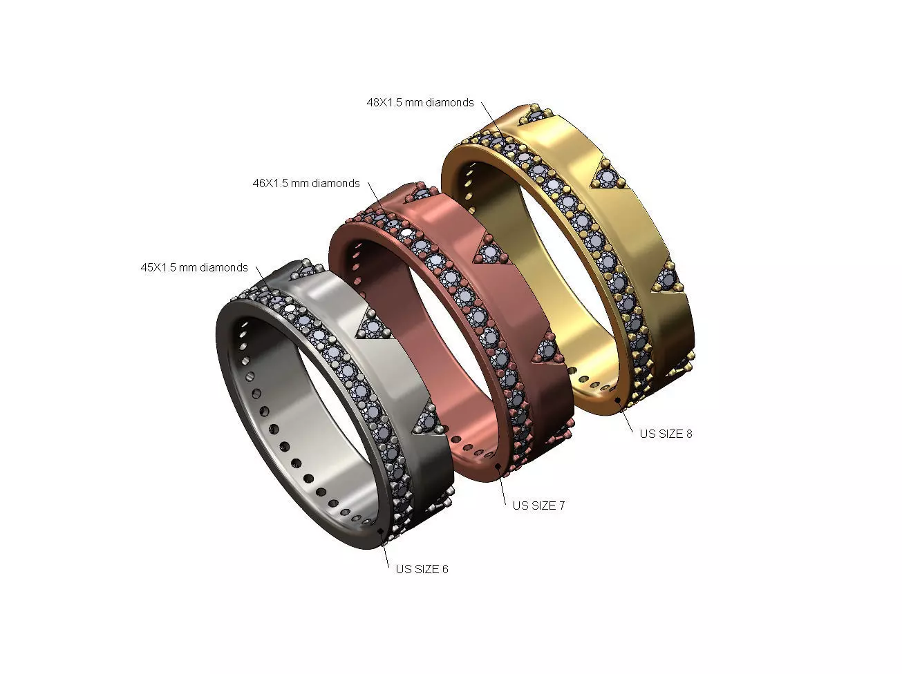 Diamond triangle side eternity ring US sizes 6 7 8 3D print model
