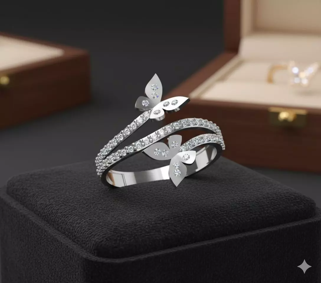 This professionally designed ring ensures precise stone settings and a smooth production process. Whether you are a jeweler, designer, or 3D printing enthusiast, this digital product will bring your butterfly jewelry ideas to life.