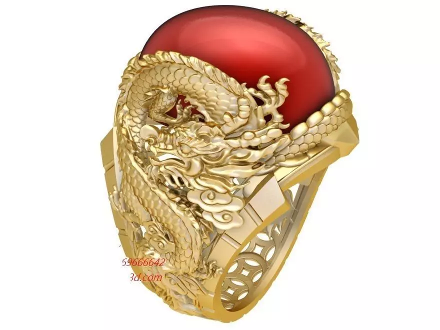 This 3D model showcases a luxury dragon red gemstone ring for men, symbolizing strength, luck, and prosperity in Eastern culture.