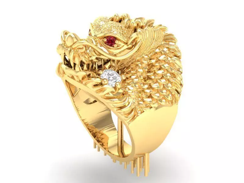 This 3D jewelry model showcases a powerful dragon head men’s ring inspired by Asian mythology.