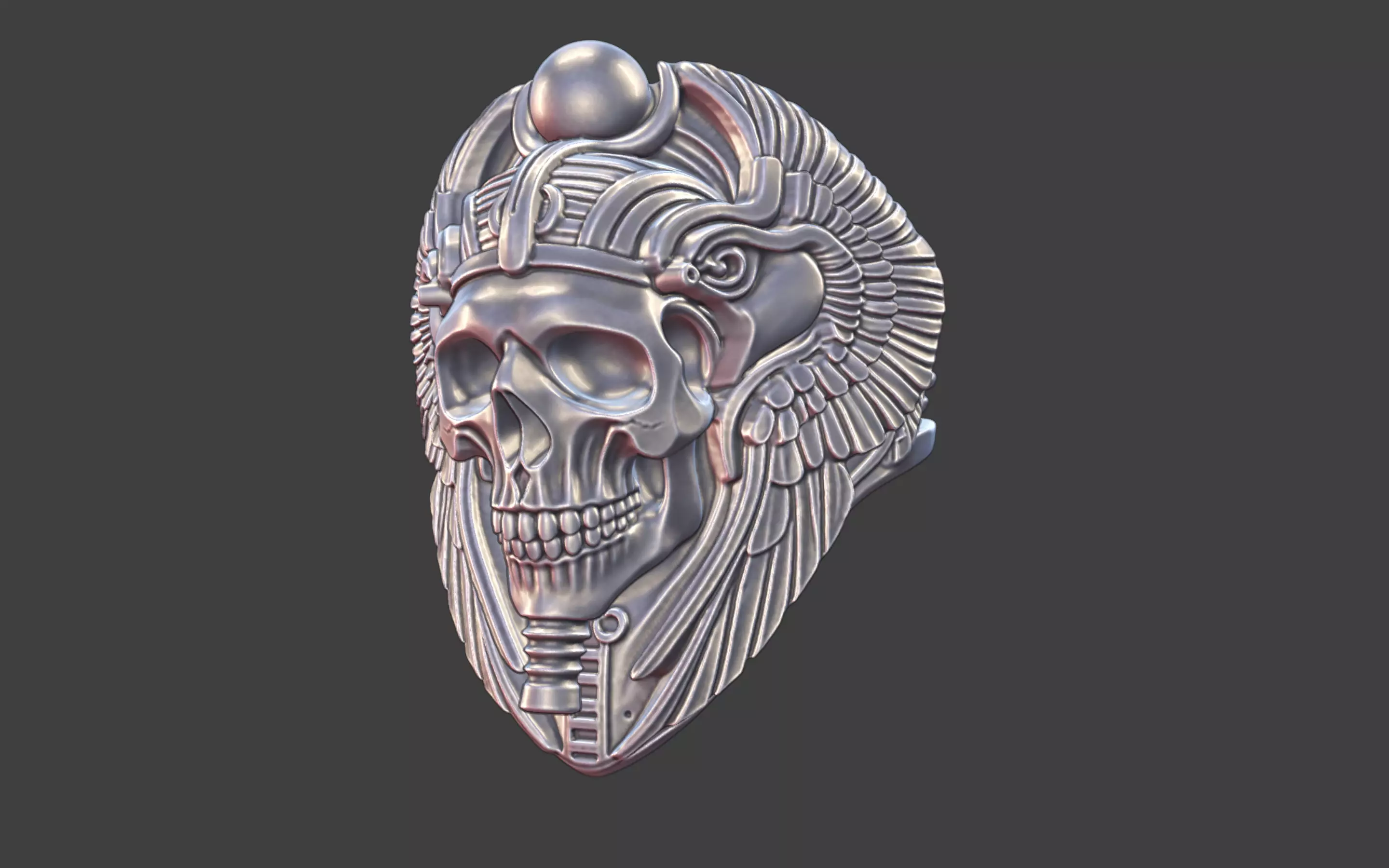 Egyptian pharao skull with birds ringthis ring has a egyptian skull with two birds on the sides.