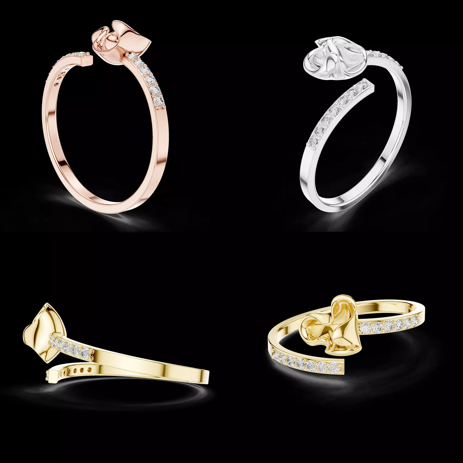 • Professionally designed jewelry CAD model• Elegant bow motif centerpiece• Diamond accented open band design• Clean geometry optimized for casting• Comfortable and lightweight ring structure• Suitable for gold and silver manufacturing• Easy to resize and modify for custom production