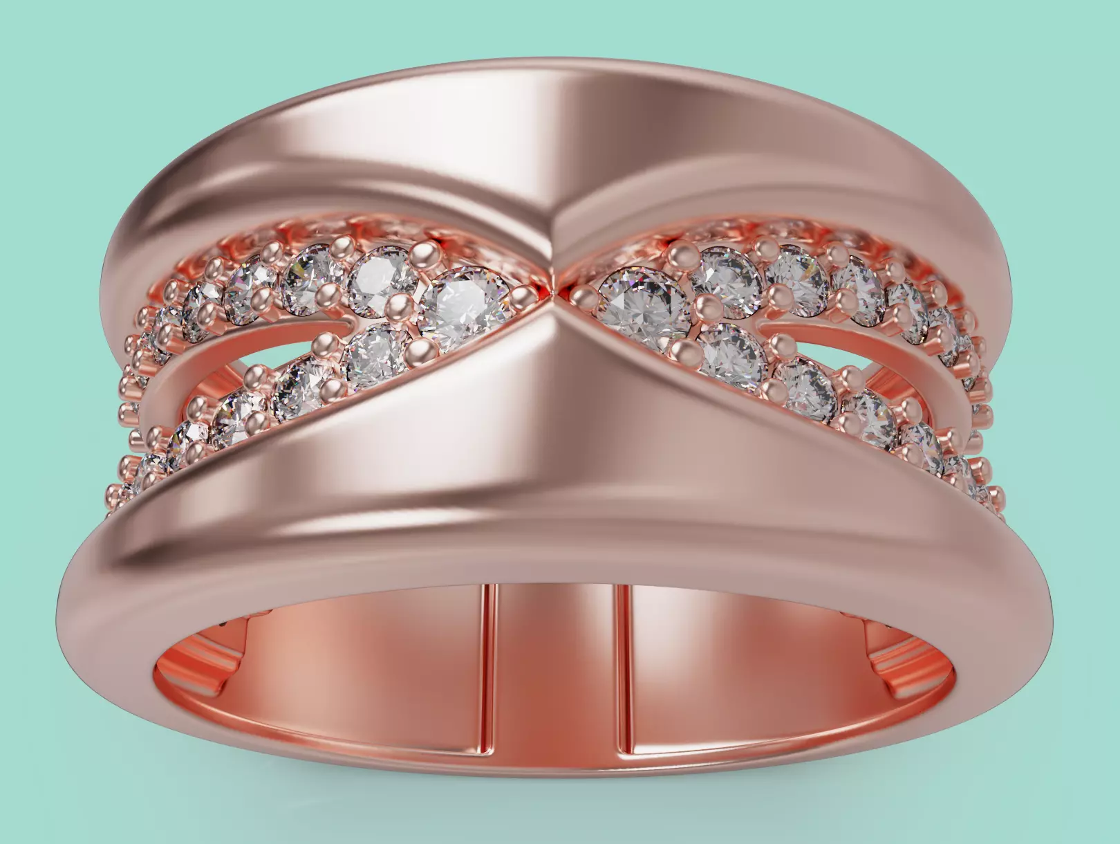 This high-quality 3D jewelry ring model is fully optimized for 3D printing, casting, and professional jewelry manufacturing.Designed using Rhino and ZBrush, it features a modern crossover band with clean curves and double pavé diamond rows, making it ideal for luxury fashion collections.