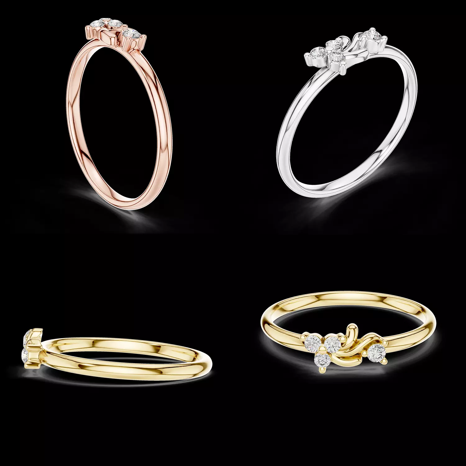This Elegant Diamond Wave Ring 3D model features a modern and graceful design inspired by flowing wave shapes. The centerpiece consists of three round diamonds arranged in a balanced cluster, connected by a smooth curved metal wave that gives the ring a stylish and contemporary appearance.