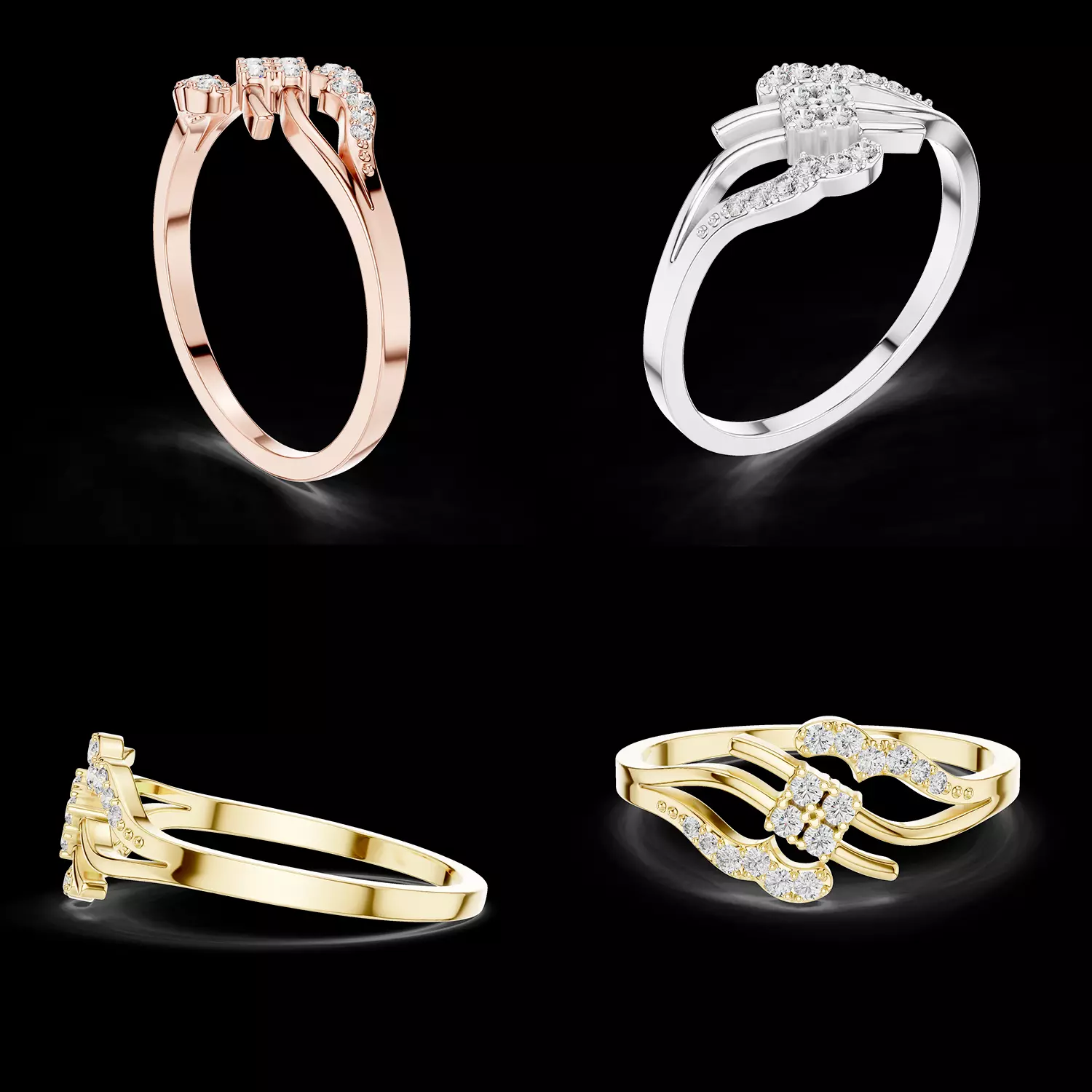 This diamond wave ring is ideal for jewelers, CAD designers, and jewelry manufacturers looking for a modern yet elegant ring design suitable for engagement rings, fashion jewelry, or custom luxury collections.