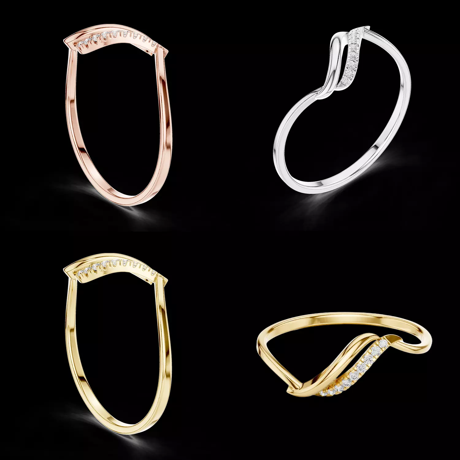 This design is ideal for jewellery designers, manufacturers, and brands seeking a modern wave-style diamond ring with a refined and elegant look.
