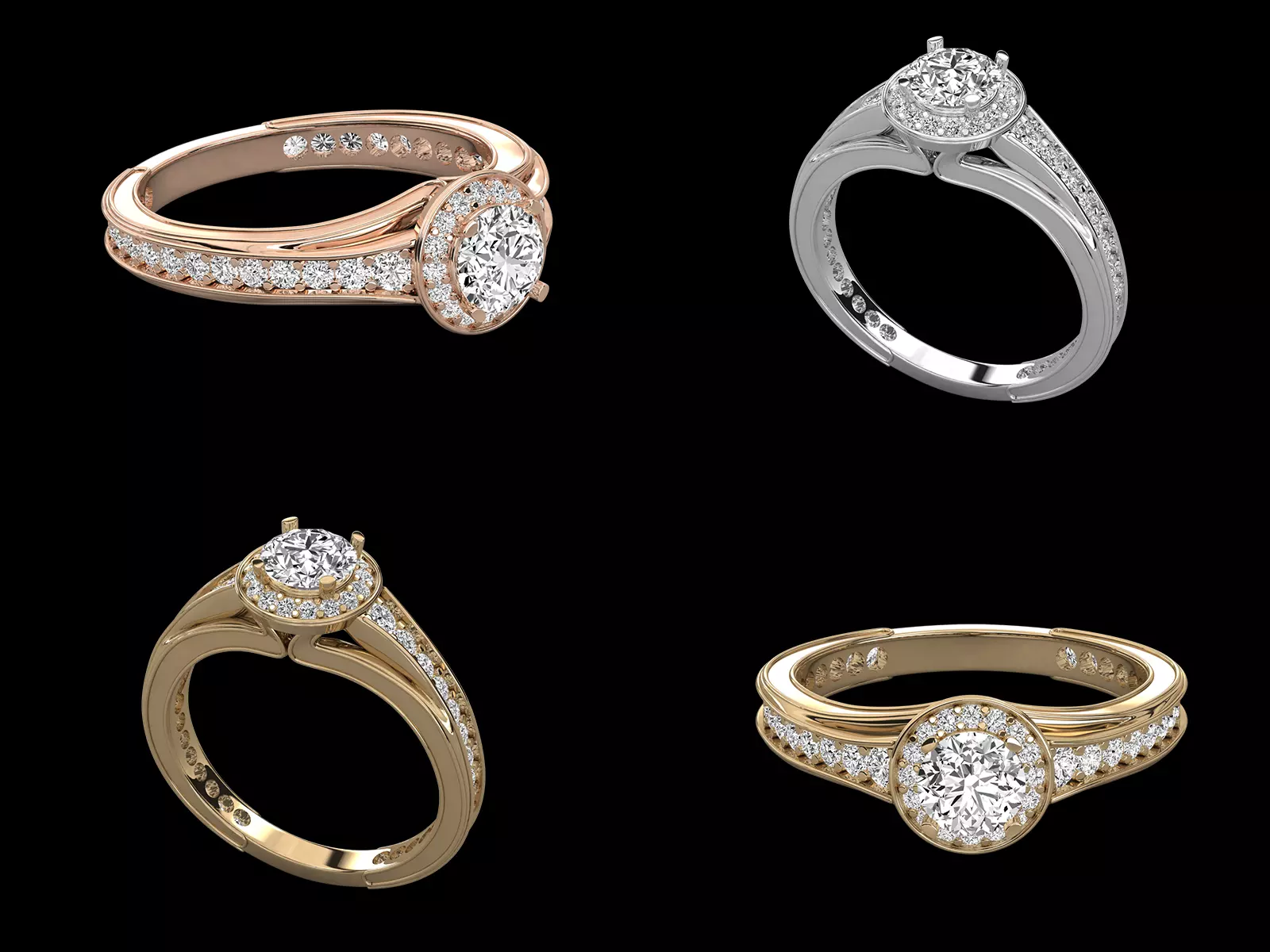 Design Type: Halo diamond ringCenter Setting: Round stone with halo settingShank Style: Split side shank with pavé stonesDesign Style: Elegant, modern luxuryModel Quality: Production-ready CADApplication: Professional jewellery manufacturing
