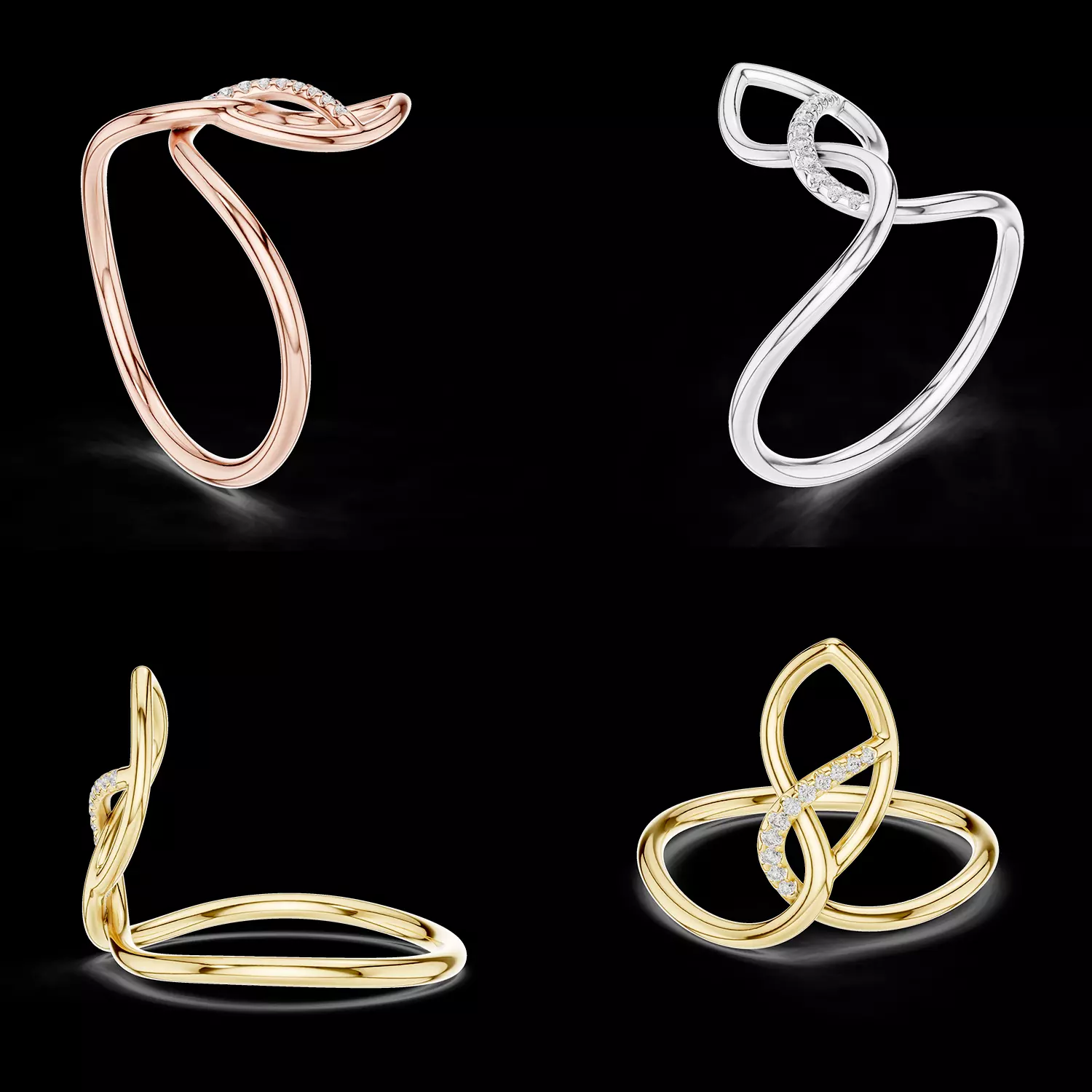 High quality professional jewellery CAD modelElegant infinity loop inspired designDiamond accented curved loopClean geometry suitable for casting and manufacturingLightweight and comfortable band structureCompatible with Rhino, Matrix, and other CAD softwareIdeal for rendering, prototyping, and jewellery production