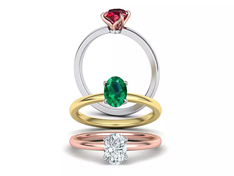 Elegant solitaire ring with 7x5mm Oval stone claw setting 3D print model