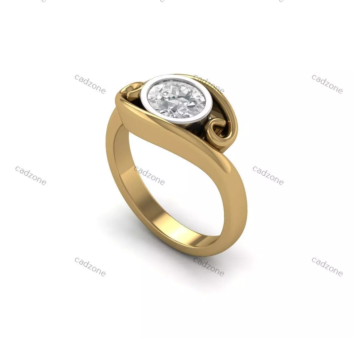 Elegant Swirl Bezel Set Diamond Ring-3D Model 3D print model