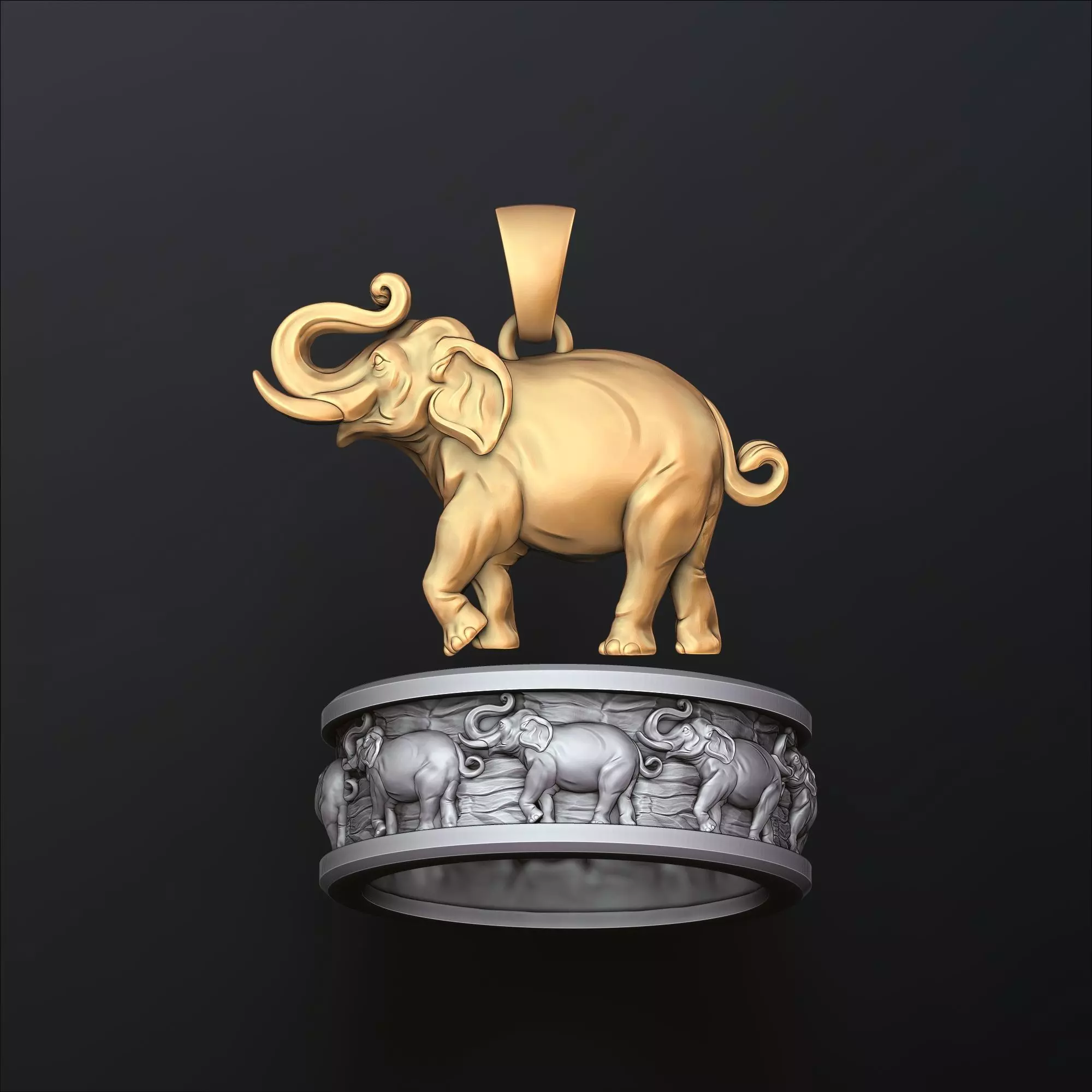 281.Elephant Pendant Ring Set 3D Print Models
