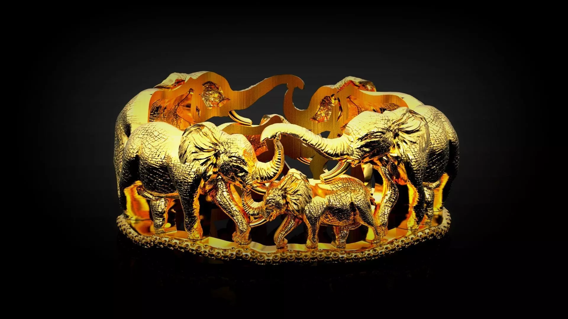 Elephant Family band art with backside scoop specifically for the jewelry ring band