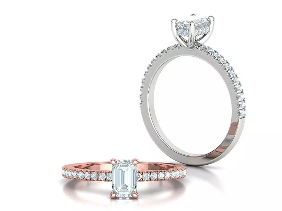 • Ready for 3d printing Emerald 6x4 Solitaire Engagement Ring French Pave Setting 3dmodel without any supports (because each 3d printer needs special supports for 3dmodel)