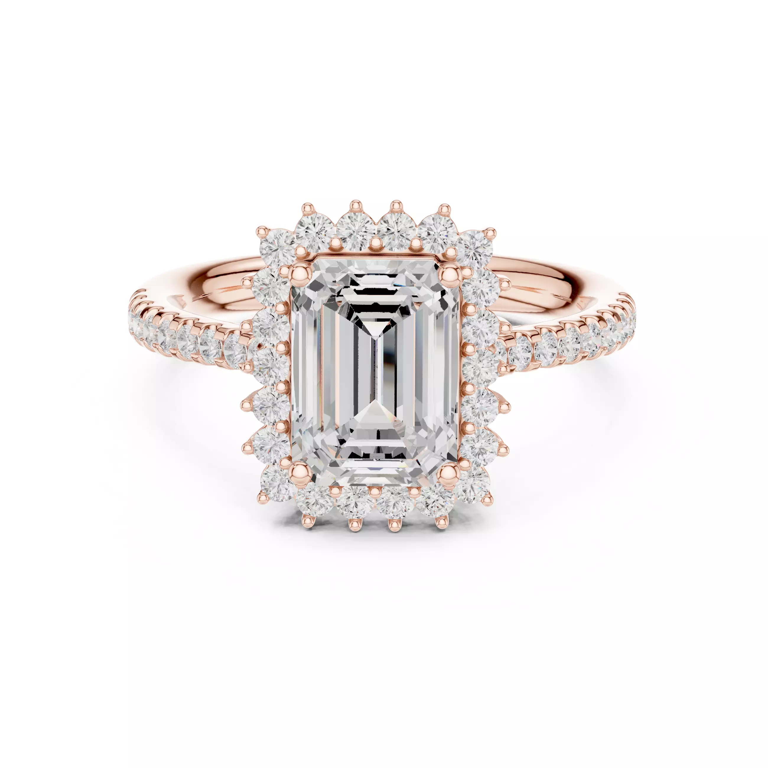 Emerald Cut Halo Diamond Engagement Ring ALL SIZES STL Video 3D print model