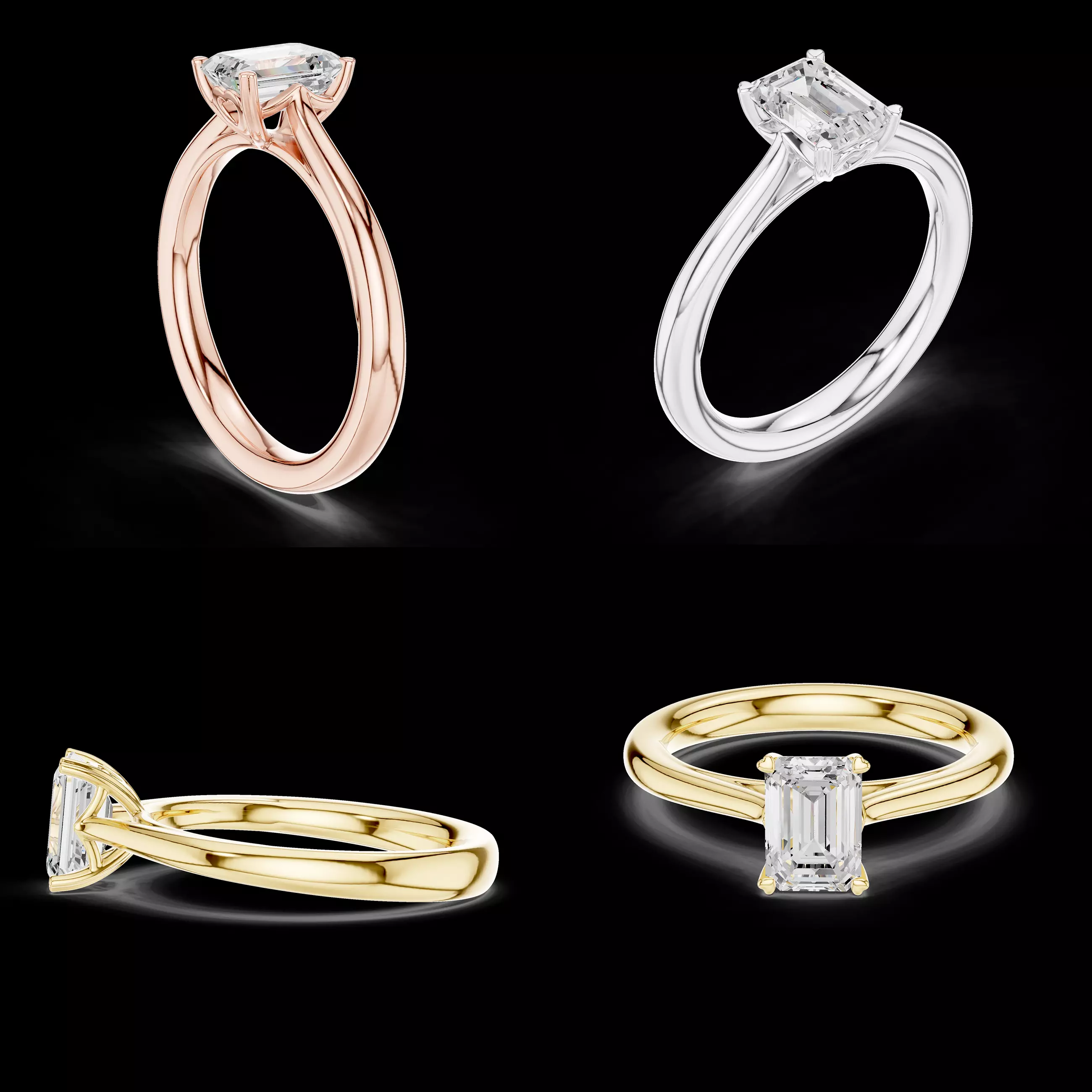 • Production-ready CAD model• Clean geometry optimized for casting• Secure emerald-cut prong solitaire setting• Smooth minimal band profile• Balanced metal thickness for durability• Polishing-friendly surfaces• Easily resizable and customizable• Suitable for gold, platinum, and silver production