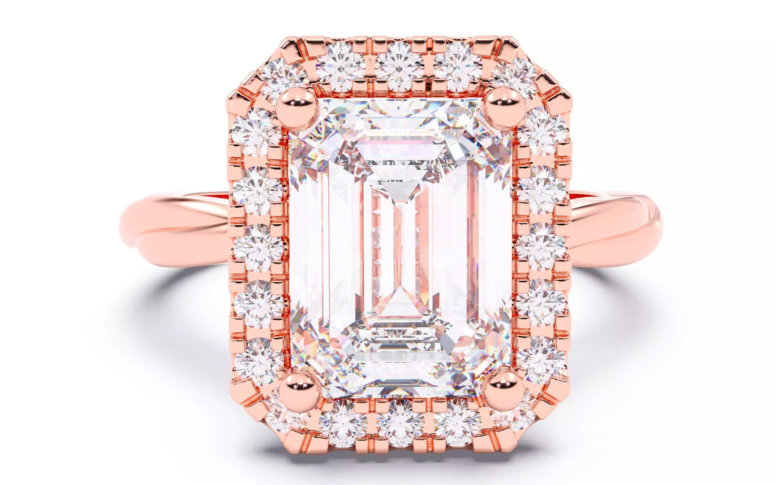 Emerald Diamond Halo Setting Solitaire Ring 3D print model