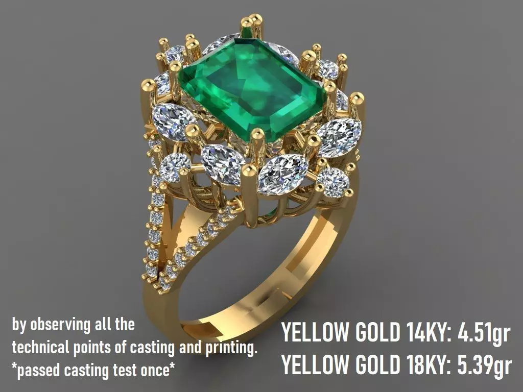 Shank depth: 1.19mm | Shank width: 2.49mm | the base of the shank depth: 1.20mm | Sizing area: 7.36mm | The height of the emerald stone prong: 4.37 | Diameter prongs: Emerald: 1.00mm | Marquise: 1.20mm | 1.16mm | Round: 1.70mm