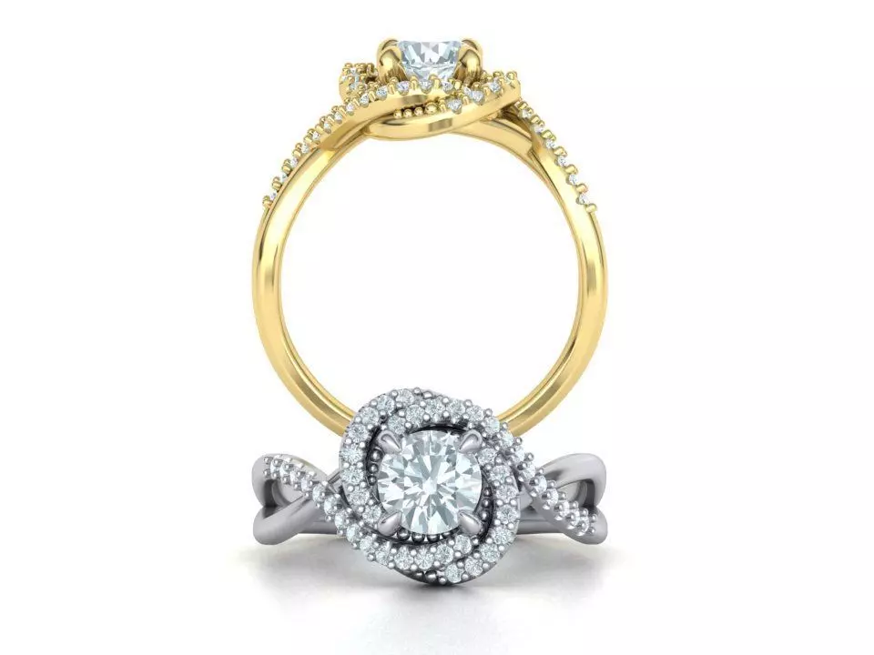 Engagement Diamond ring Spiral design total 1ct gems weight 3D print model