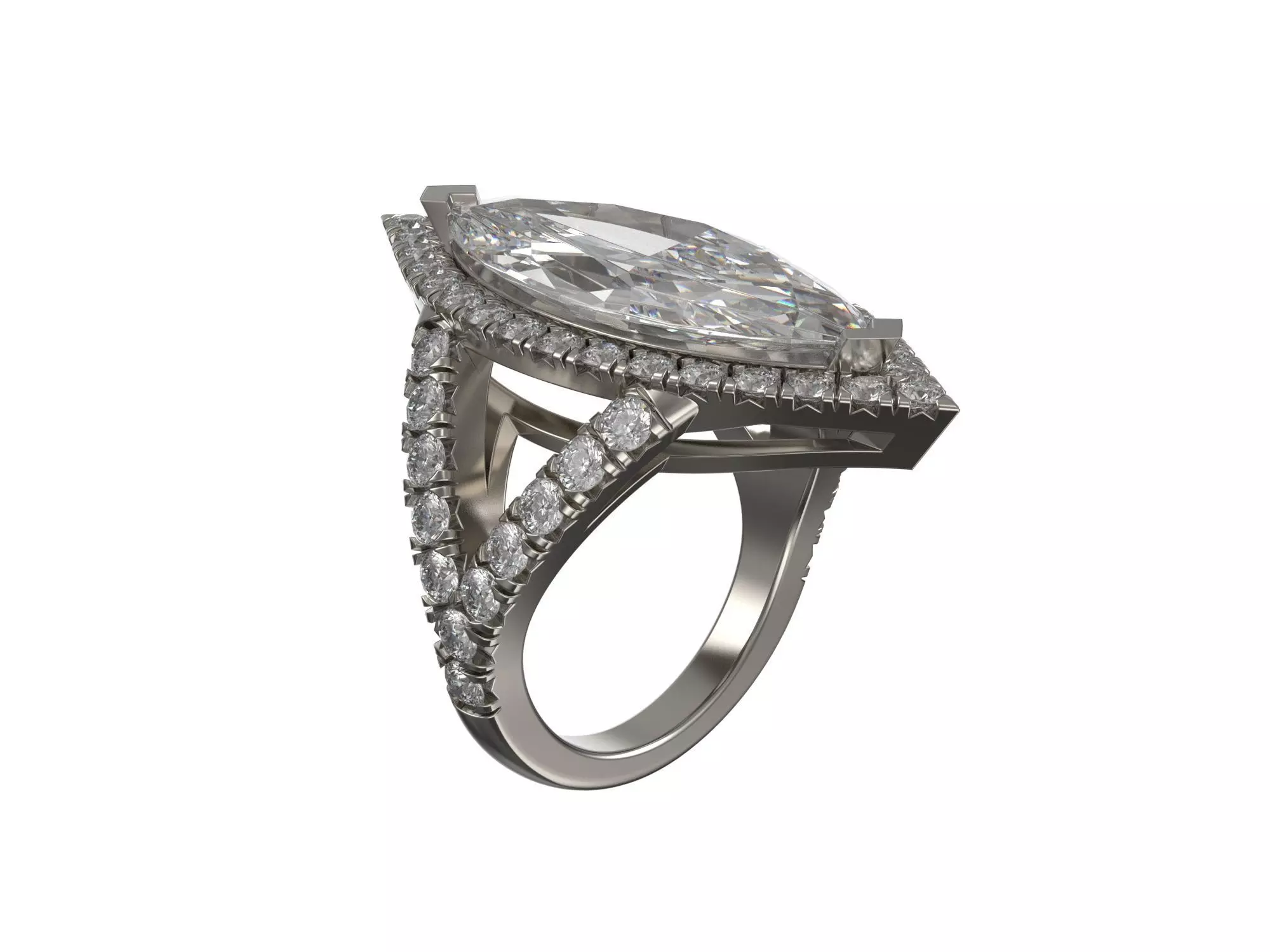 Engagement golden ring with marquise diamond 3D print model