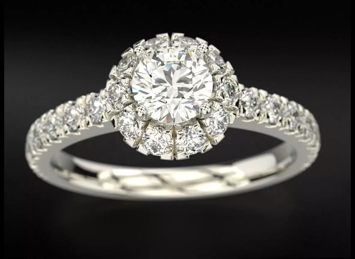 Engagement ring with diamonds and one large diamond 692 3D print model