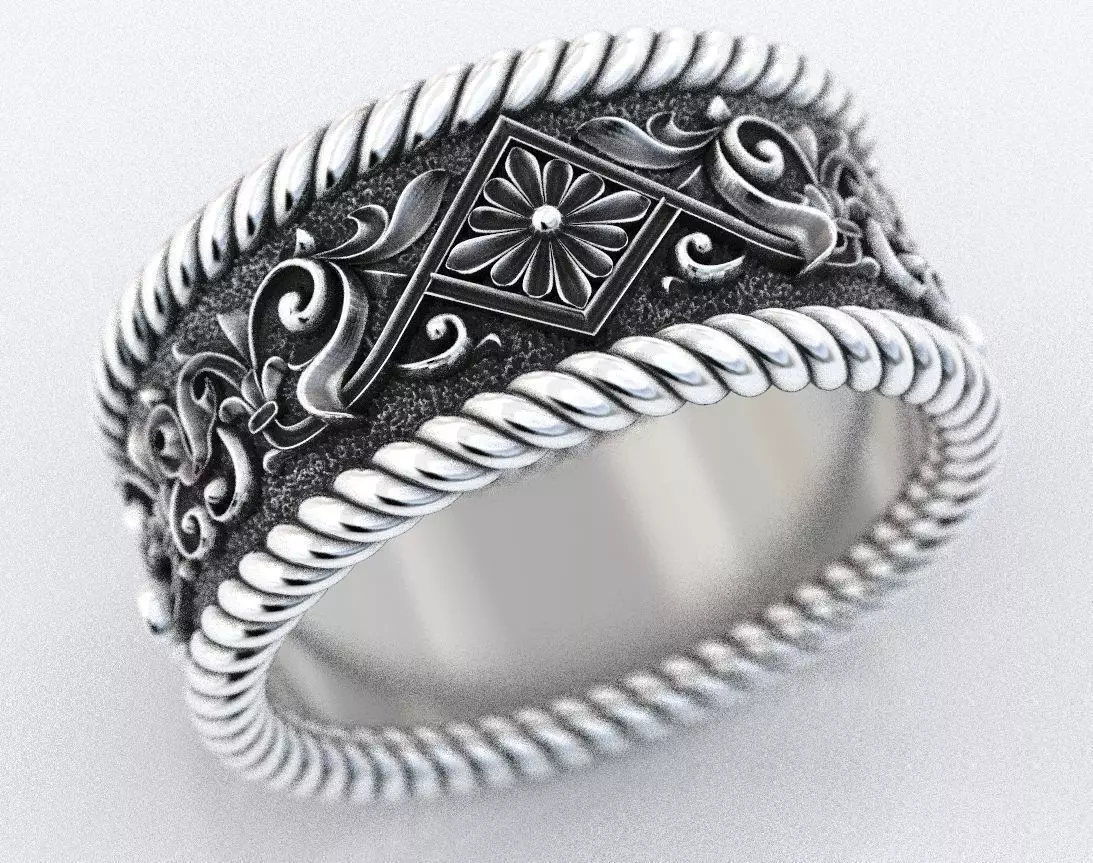 Engagement ring with patterns and rope 382 3D print model
