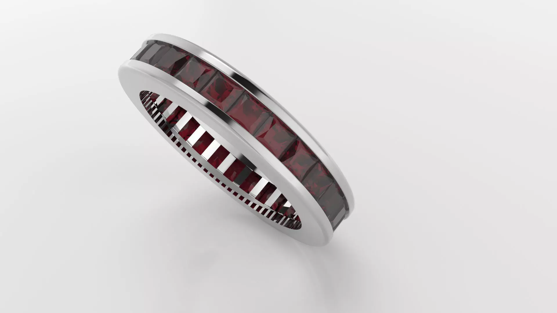 eternity ring with channel settingThis elegant eternity ring features a continuous loop of gemstone seats, creating a timeless symbol of love and commitment. Designed for 18K white gold, the band weighs approximately 6.88 grams in precious metal, making it lightweight yet luxurious.