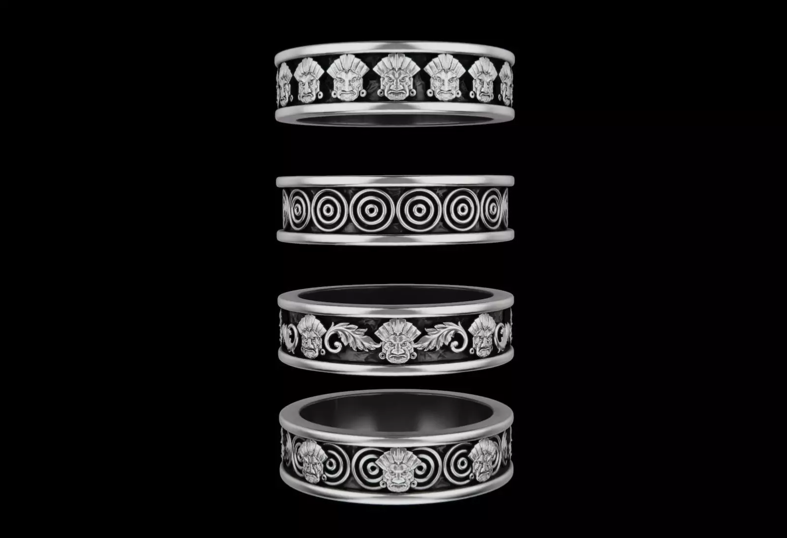 4 different ring in 6 different size ( USA6 _ USA7 _ USA8 _ USA9 _ USA10 _ USA11 ) suitable for 3d print and casting in oxidized silver , gold or any material you want .
