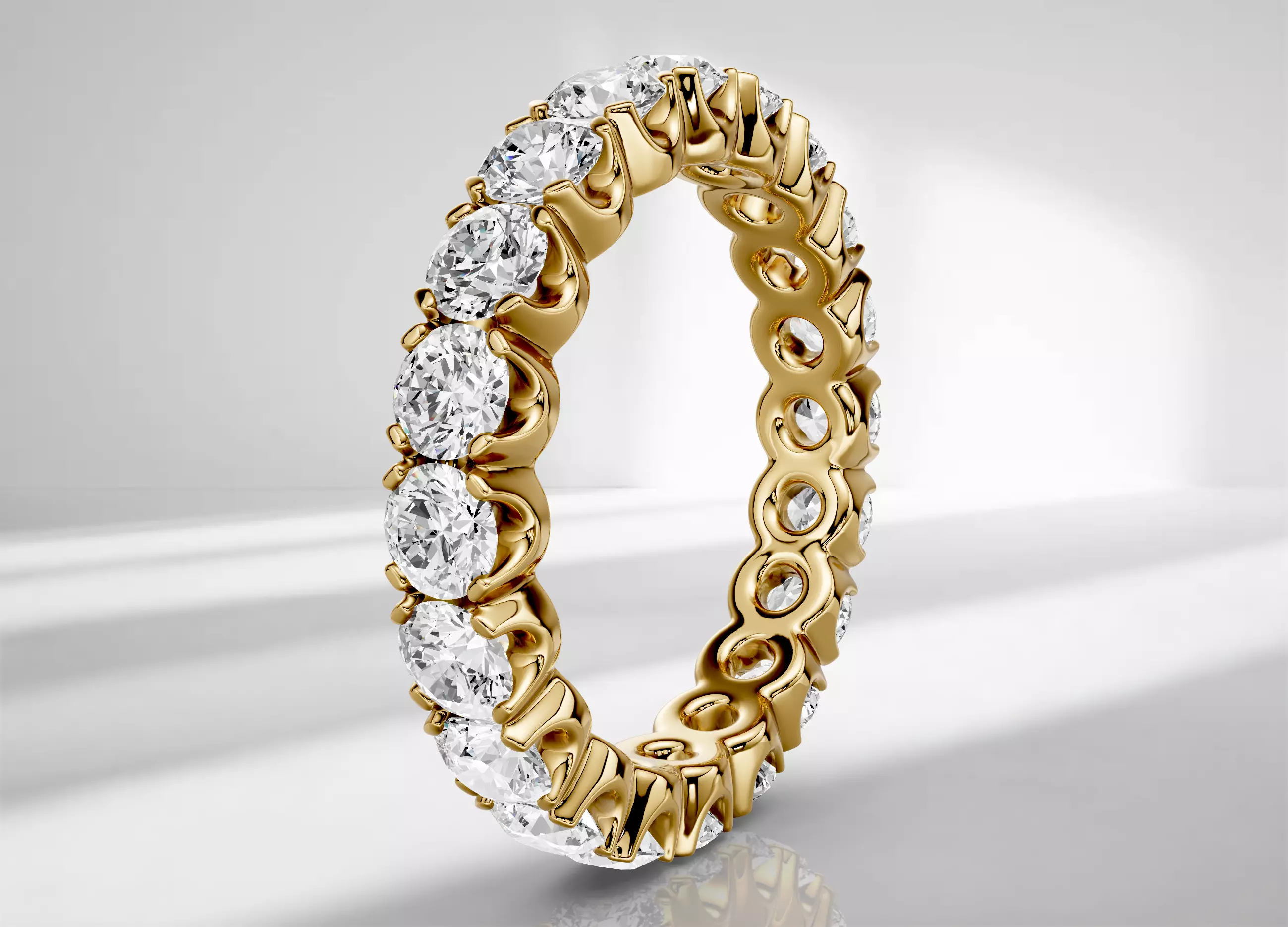 - This is a high-quality 3D model of an eternity band ring featuring a continuous row of round-cut stones, symbolizing everlasting love and timeless elegance.