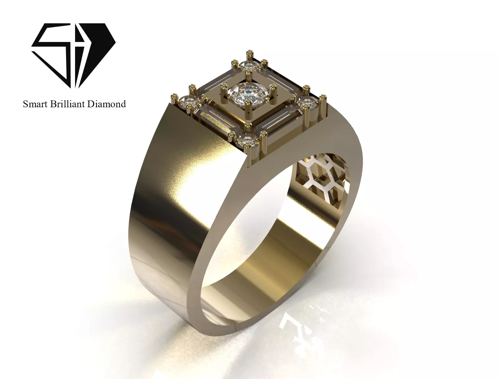 Exquisite Multi-Stone Men's Statement Ring - 3D Print Ready (Model mr0374)The 3D model of the men's ring mr0374 is the pinnacle of modern jewelry design for classic and royal styles. This design creates a dazzling sparkle by cleverly combining a large center stone, four baguette stones around it, and brilliant stones at the corners. The wide, geometric body of this model displays dignity and strength together.