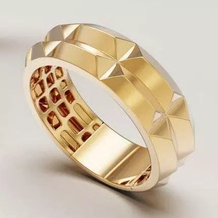 Modern geometric band ring with faceted surface, optimized for professional jewelry manufacturing and stable casting performance.