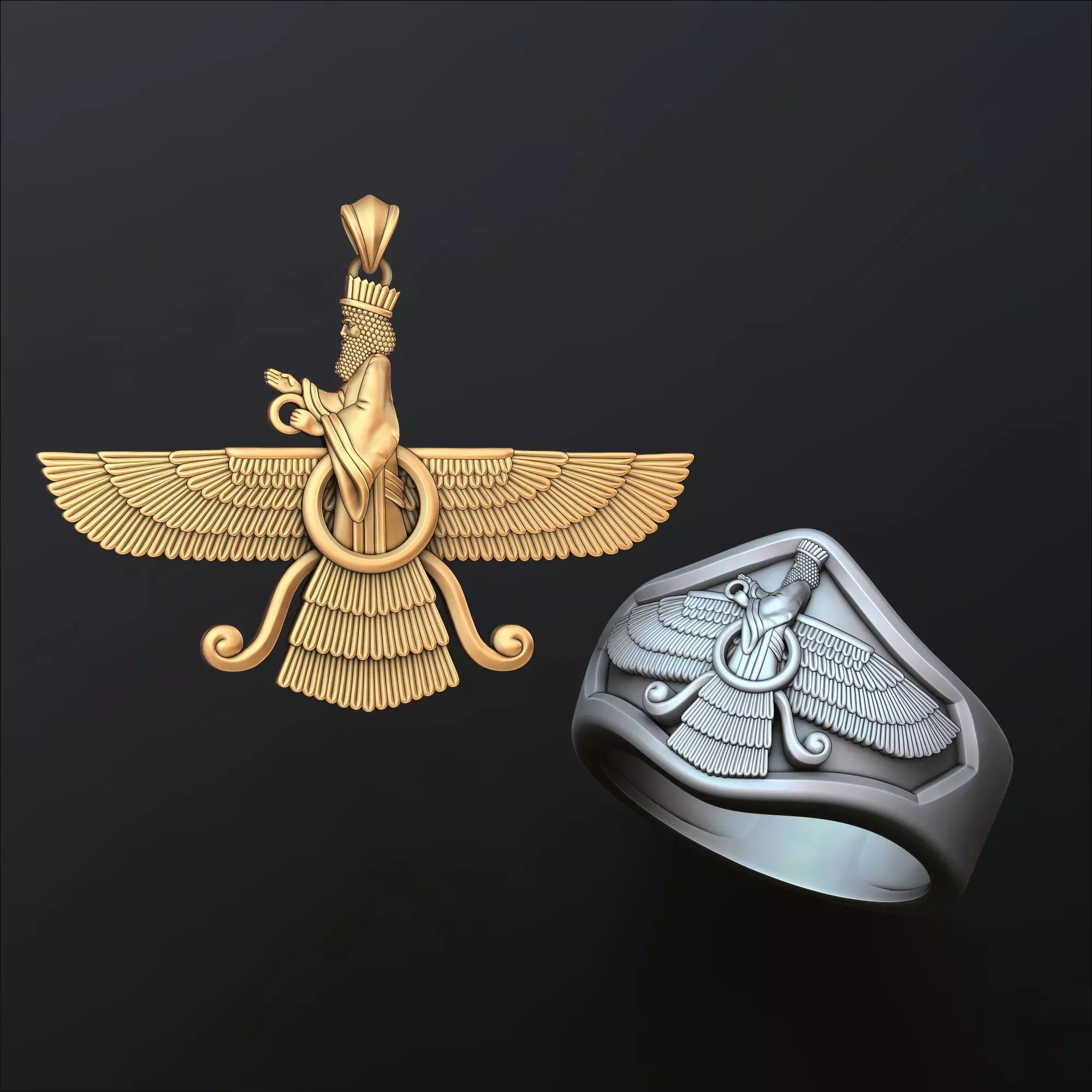 406.Faravahar Ahura Mazda pendant ring collection 3D Print Models