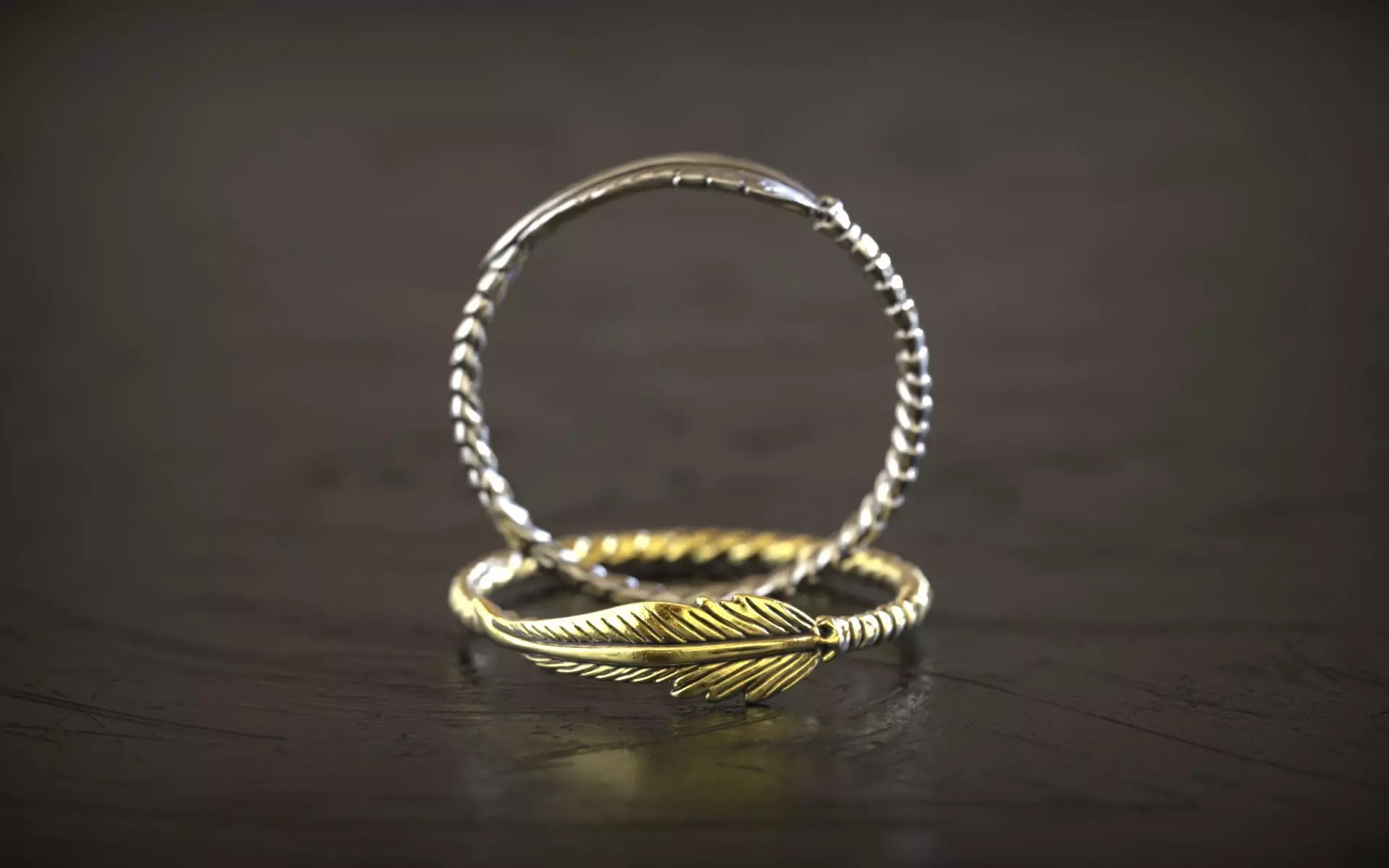 This is an elegant, professionally sculpted 3D printable ring featuring a delicate feather that gracefully wraps around a textured, rope-style twisted band. This design captures a perfect balance of bohemian style and organic detail, making it a versatile piece for modern jewelry collections.
