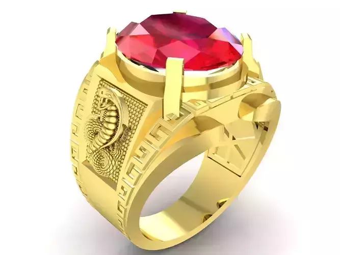 This is a high-detail 3D jewelry model of a luxury men’s ring featuring an oval center gemstone and powerful snake motifs on both sides of the shank. The snake symbolizes strength, wisdom, protection, and rebirth, making this design ideal for bold statement jewelry and symbolic collections.