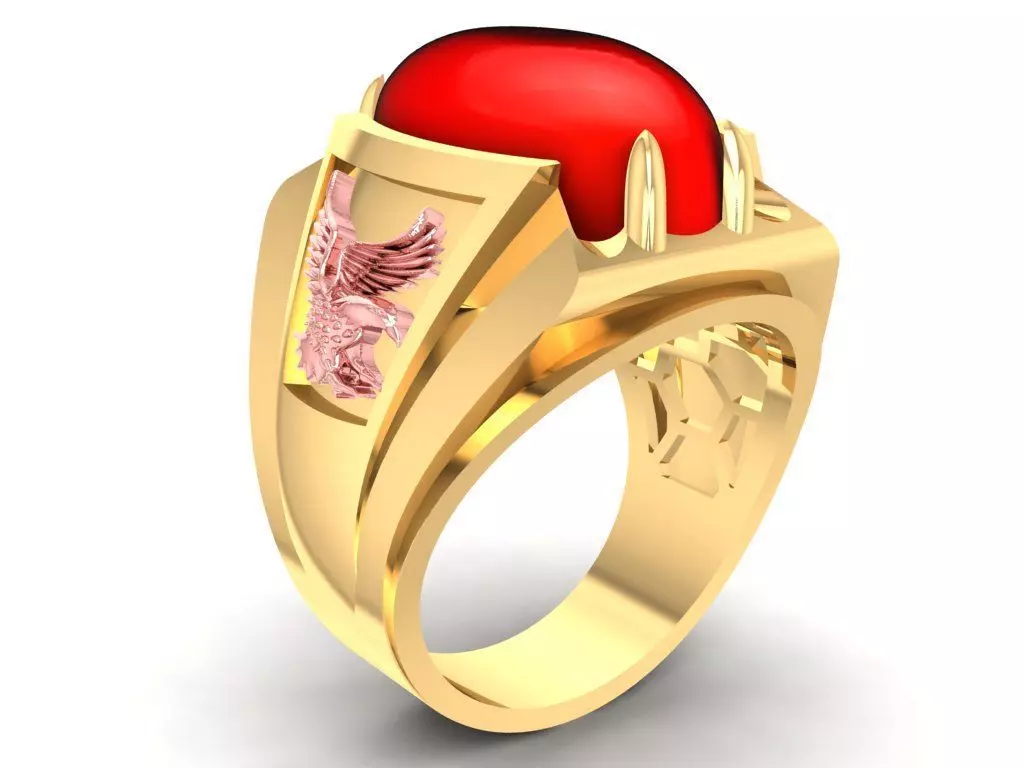 This 3D model presents a bold and elegant Eagle Red Oval Gemstone Men Ring, designed to convey power, confidence, and prestige.