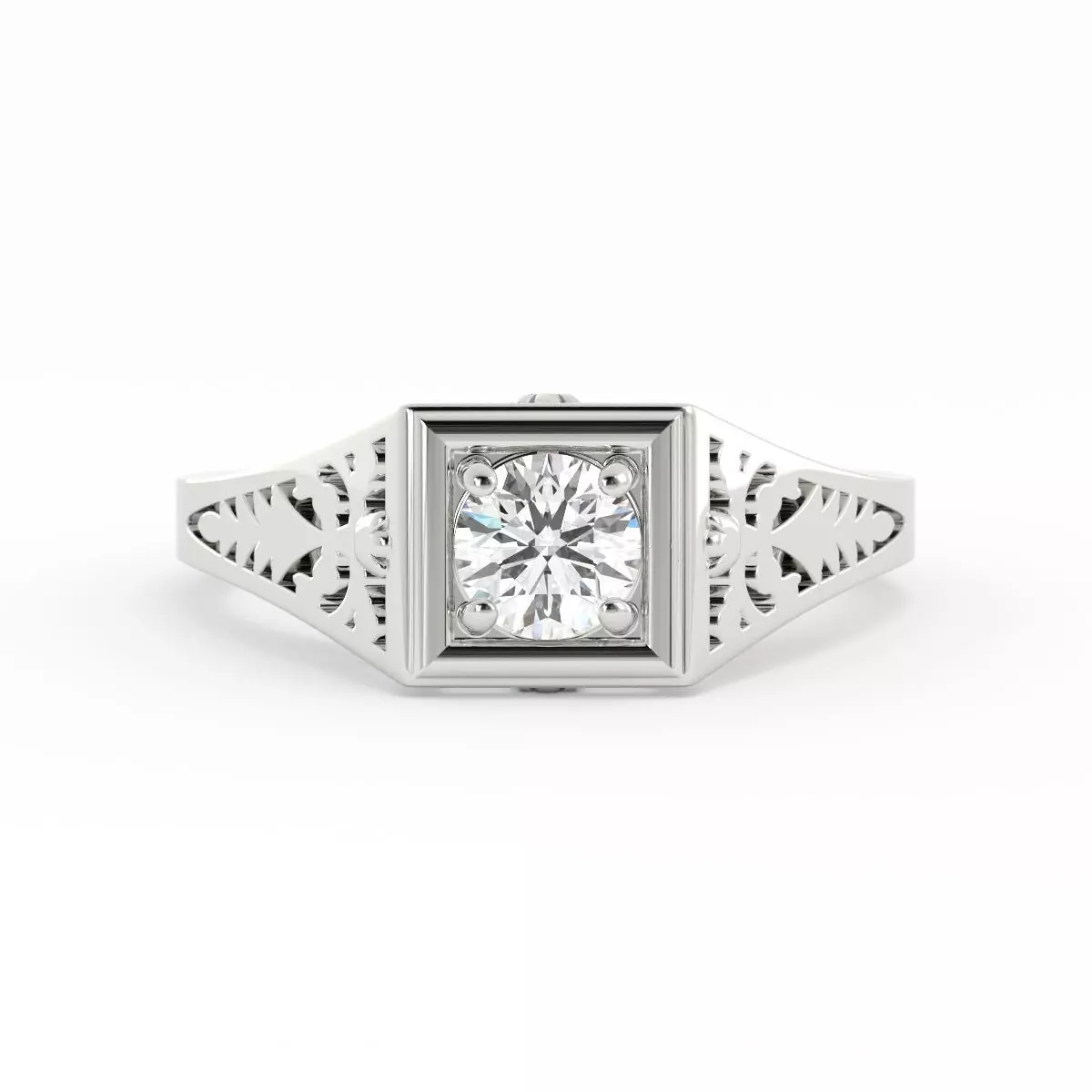 Filigree Round Diamond Solitaire Ring With Rendering 3DM 3D print model