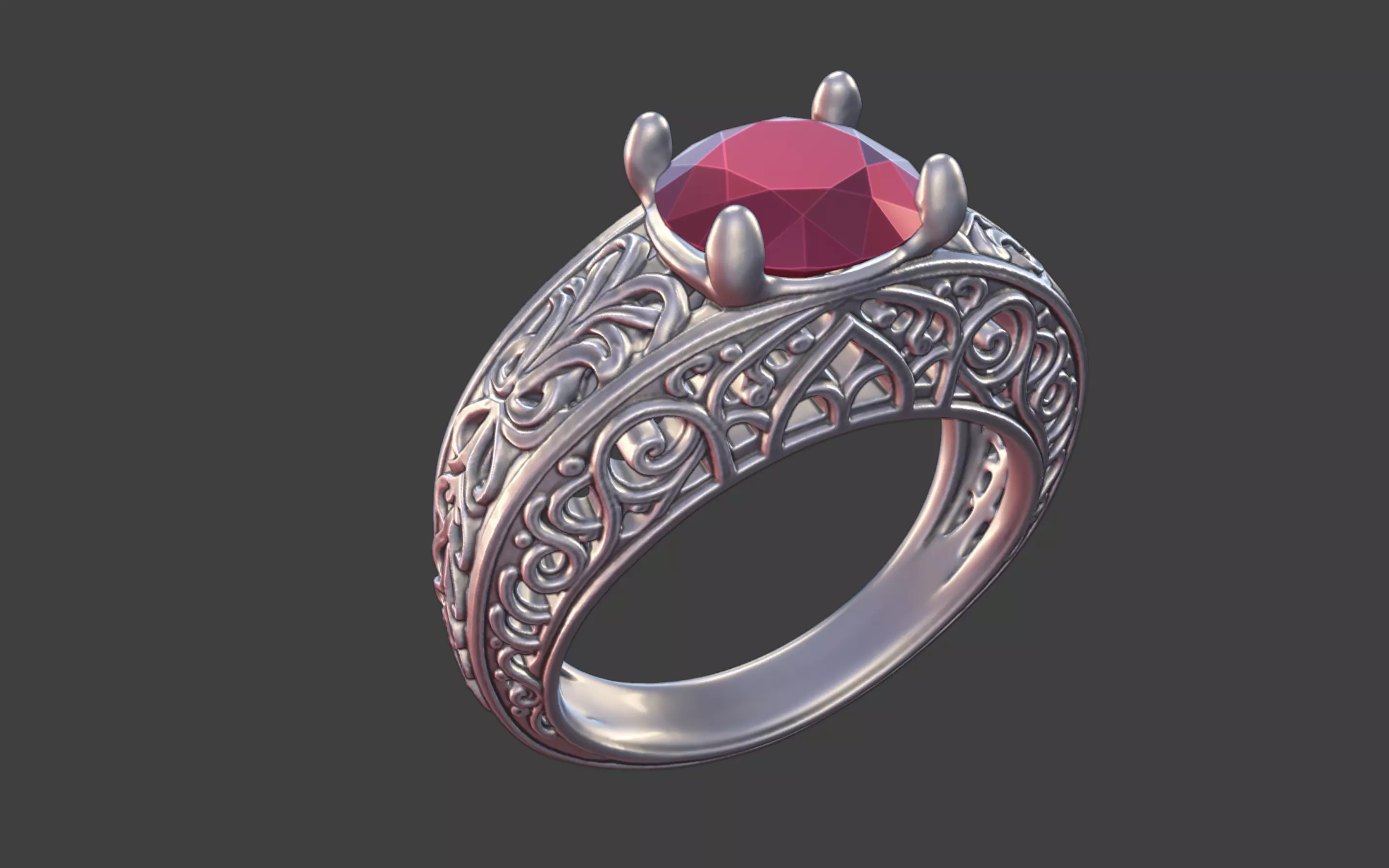 Every curve and scroll of the filigree is modeled with precision, offering both visual delicacy and enduring strength.